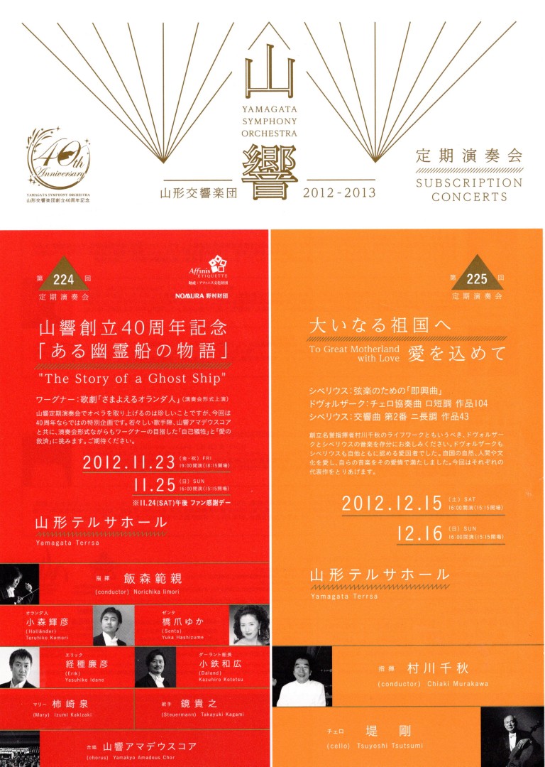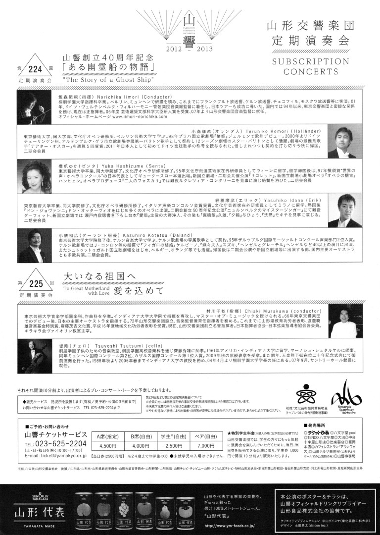 山響第224回定期演奏会 ~山響創立40周年記念~ | ワーグナー/歌劇「さまよえるオランダ人」(演奏会形式) | 指揮:飯森範親 ソリスト:橋爪ゆか 小森輝彦 小鉄和広 経種廉彦 在原泉 鏡貴之 管弦楽:山形交響楽団 合唱:山響アマデウスコア | 山形テルサホール | チラシ表チラシ裏 | |