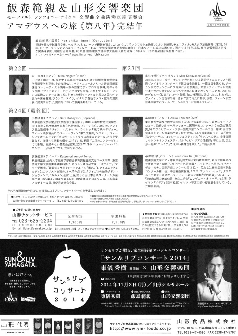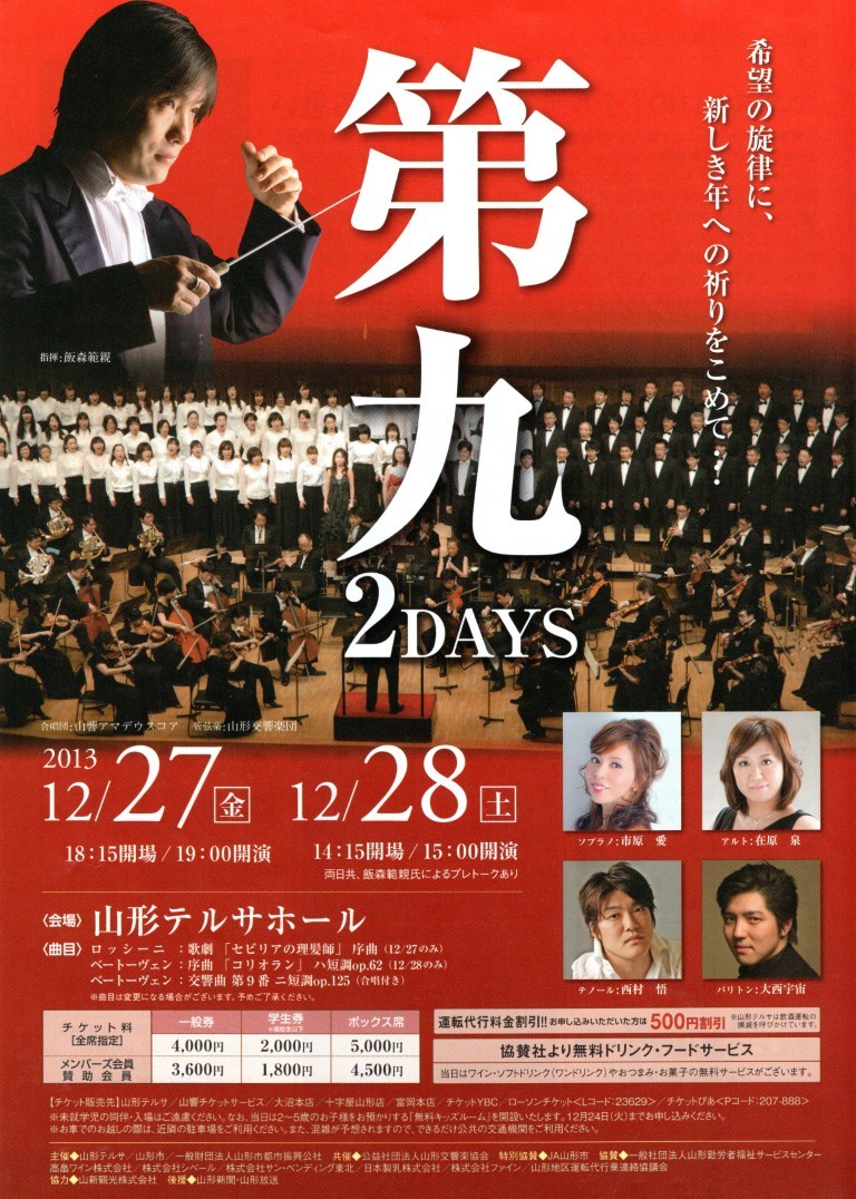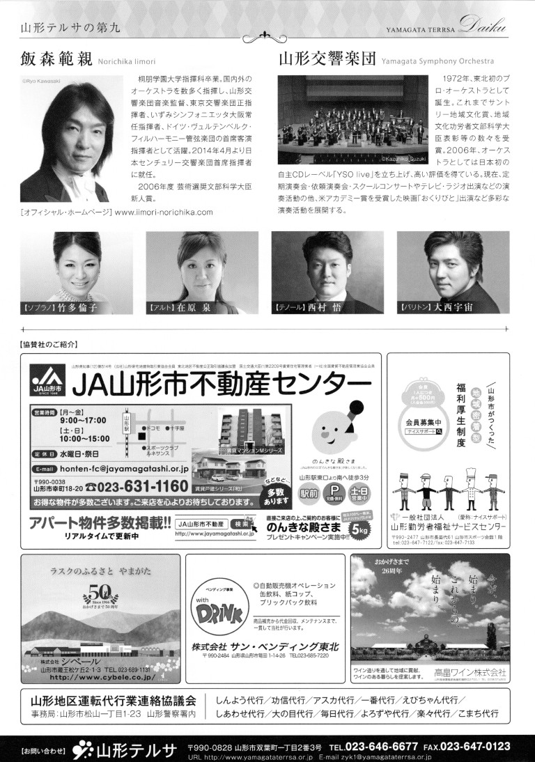 指揮:飯森範親 管弦楽:山形交響楽団 合唱:山響アマデウスコア | 山形テルサホール | チラシ表チラシ裏 | |