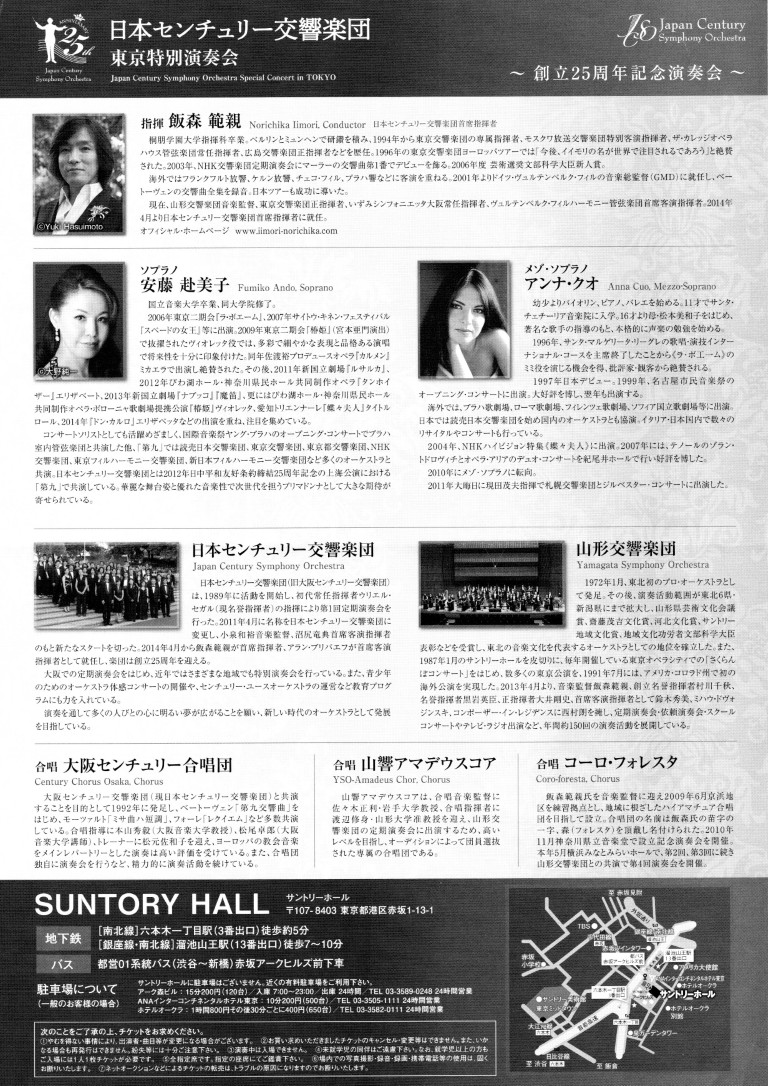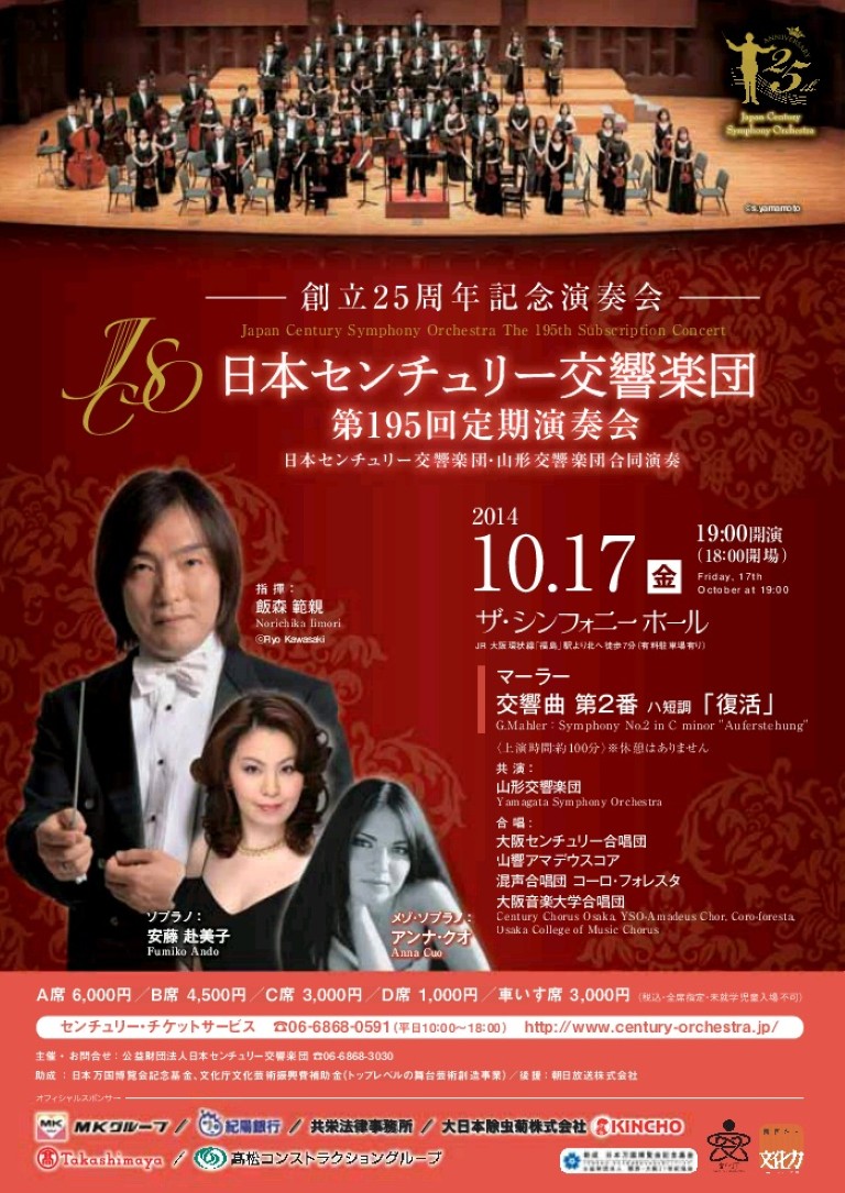 日本センチュリー交響楽団 第195回定期演奏会 | マーラー/交響曲第2番 ハ短調「復活」 | 指揮:飯森範親 ソプラノ:安藤赴美子 メゾソプラノ:アンナ・クオ 管弦楽:日本センチュリー交響楽団・山形交響楽団 合唱:山響アマデウスコア | ザ・シンフォニーホール(大阪) | チラシ表チラシ裏 | |