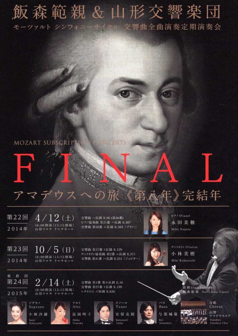 アマデウスへの旅 Vol.24 | モーツァルト/レクイエム 二短調 K.626 | 指揮:飯森範親 ソプラノ:小林沙羅 アルト:富岡明子 テノール:安保克則 バス:与那城敬 管弦楽:山形交響楽団 合唱:山響アマデウスコア | 山形テルサホール | チラシ表チラシ裏 | |