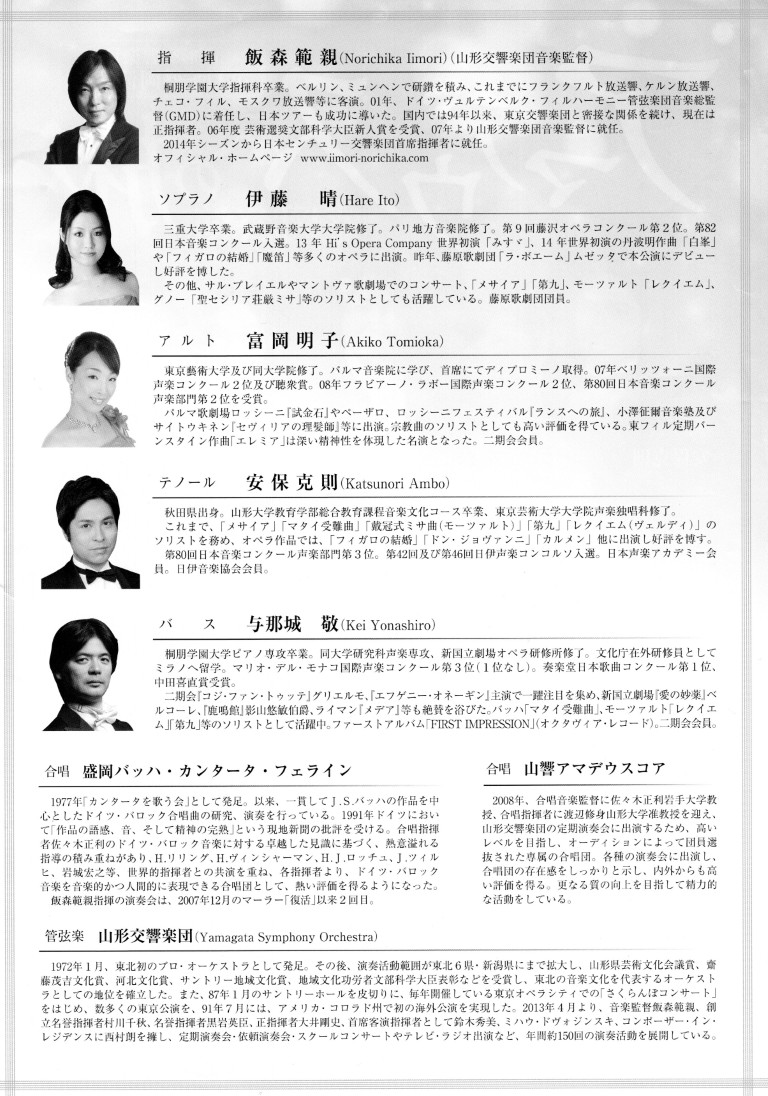 山形・仙台・盛岡東北3都市 マタイ受難曲特別演奏会 |
