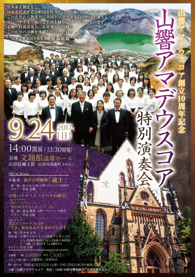 山響アマデウスコア創立10周年記念 特別演奏会 | 佐藤眞/混声合唱組曲「蔵王」 ヴェルディ/歌劇「ナブッコ」より捕虜たちの合唱 「行け、わが思いよ、金色の翼に乗って」ほか JSバッハ/カンタータ150番 |