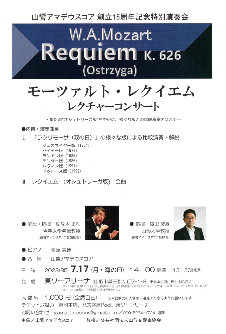 モーツァルト/レクイエム(オシュトリーガ版/2019年)ニ短調 K.626 | 指揮:佐々木正利・渡辺修身 ピアノ:菅原美穂 合唱:山響アマデウスコア | 東ソーアリーナ(山形市) | チラシ表チラシ裏 | |