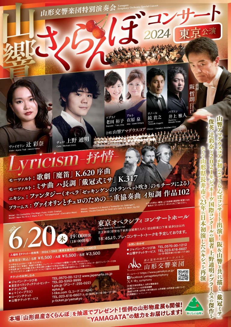 山響さくらんぼコンサート2024 東京公演 | モーツァルト/ミサ曲 ハ長調「戴冠式ミサ」K.317 | 指揮:阪 哲朗 ソプラノ:老田裕子 アルト:在原 泉 テノール:鏡 貴之 バリトン:井上雅人 管弦楽:山形交響楽団 合唱:山響アマデウスコア・他 | 東京オペラシティコンサートホール | チラシ | |