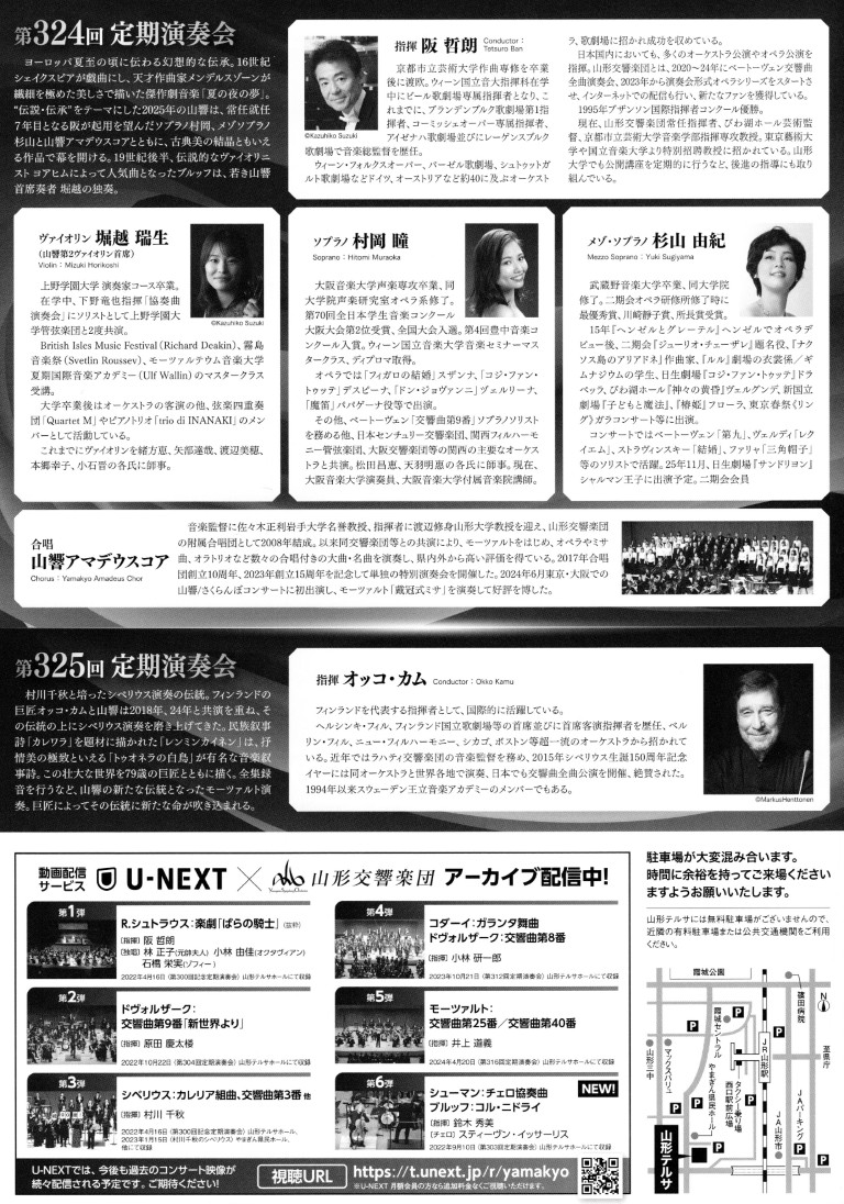 山響第324回定期演奏会 | メンデルスゾーン:劇付随音楽「夏の夜の夢」作品61 | 指揮:阪 哲朗 ソプラノ:村岡 瞳 メゾ・ソプラノ:杉山 由紀 管弦楽:山形交響楽団 合唱:山響アマデウスコア | 山形テルサホール | チラシ表チラシ裏 | |